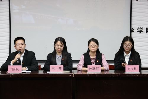 为了贯彻学习习近平新时代中国特色社会主义思想和党的十九大精神,扎实推进“四进四信”活动,4月17日下午,永乐高ylg030net习近平新时代中国特色社会主义思想学习研究协会成立仪式在实验楼114室举行。学院团委书记孙珠红、社团联合会秘书长王梦、学院习近平新时代中国特色社会主义思想学习研究协会会长肖宝利以及协会60余名会员出席成立仪式。仪式由学院社团联合会主席刘泽民主持。