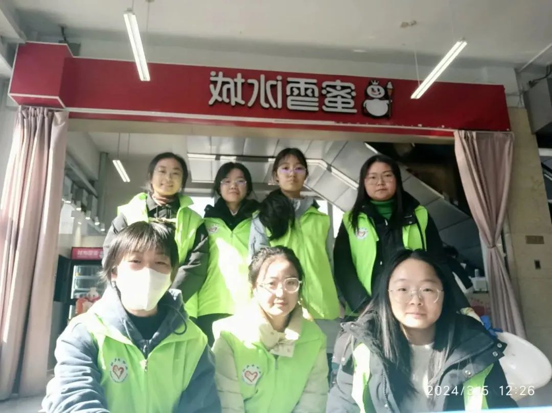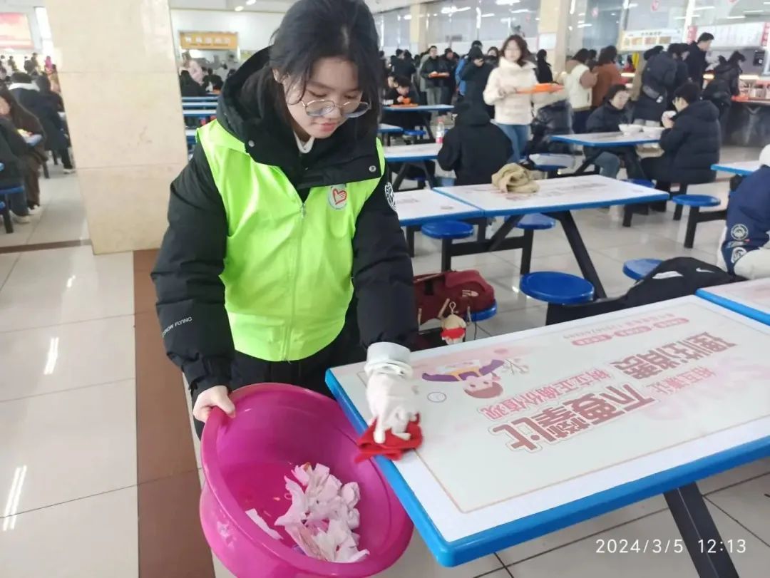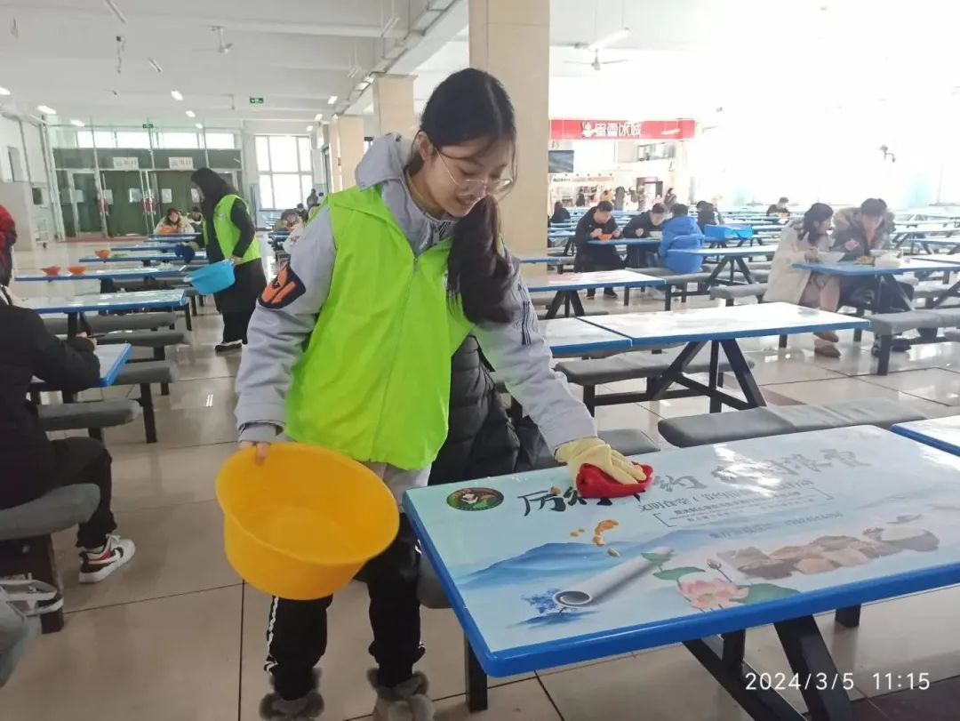 大家清理的同时,还对吃饭的学生们进行学雷锋日的宣传,积极投身到志愿活动中来,培养预防传染病,爱护校园的精神。